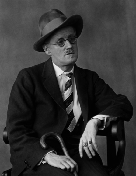 Toeliching: Portret van de schrijver James Joyce, genomen in Abbott's eigen fotostudio.